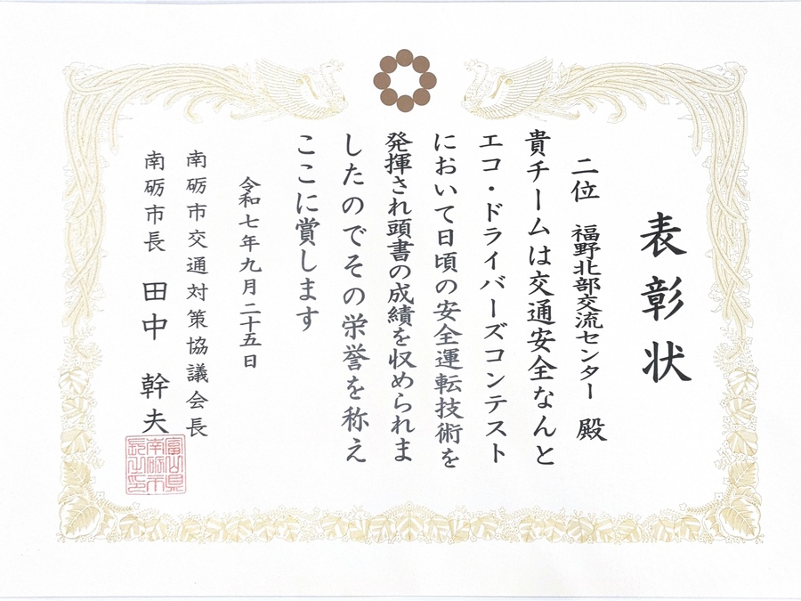 9月25日 交通安全なんとエコ・ドライバーズコンテスト 3名1チーム 北部交流センターは2位の成績
