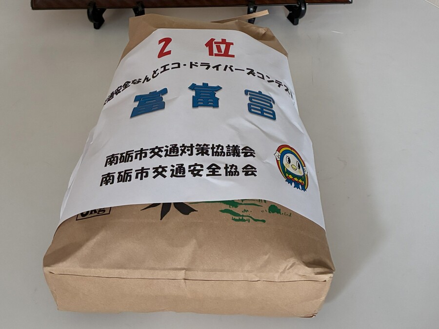 交通安全なんとエコ・ドライバーズコンテスト 期間 8月1日~8月31日 北部交流センターは3名1チーム エントリーしました、結果見事に2位! お米 富富富6キロ×3名頂きました。