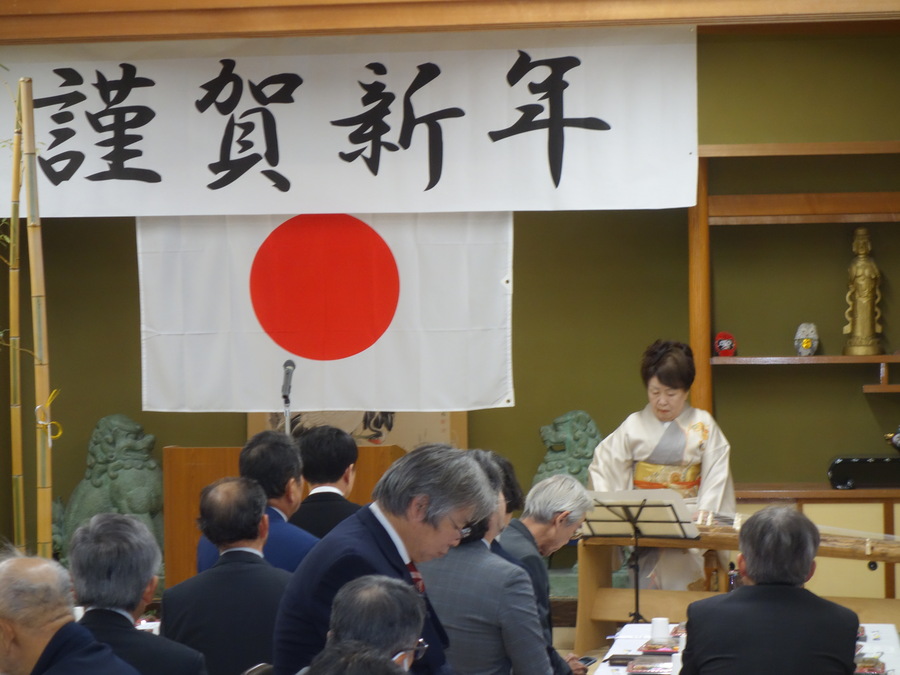 1月1日 新年賀詞交歓会 11時半~ 会長挨拶、安達孝彦議員の挨拶を頂き、その後正月には欠かせないお琴を弾いて頂きました。